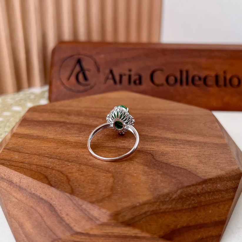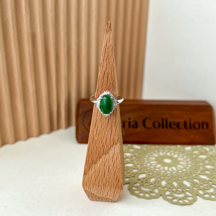 Timeless and artistically crafted, this design appeals to those who appreciate high-quality gemstones paired with fine jewelry craftsmanship. The Green Jadeite Jade Halo Ring embodies both modern refinement and the enduring symbolism of jade—representing harmony, prosperity, and a sense of inner calm.