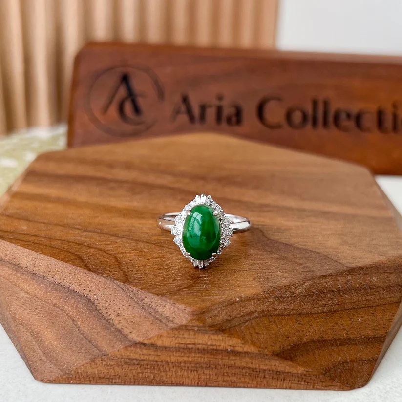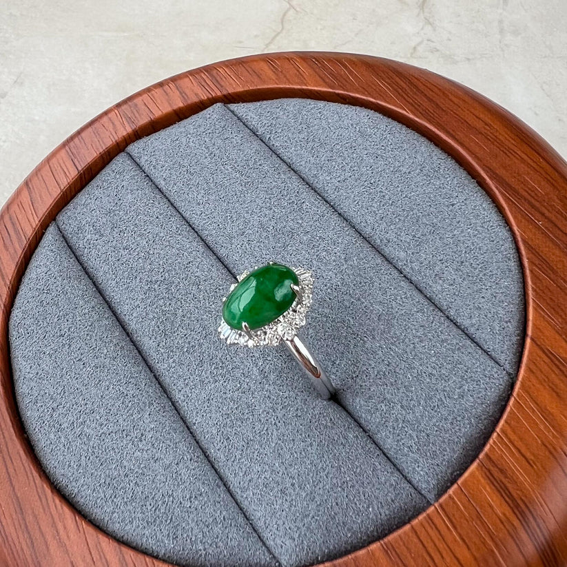 Luxurious, symbolic, and exquisitely crafted, the Green Jadeite Jade Halo Ring is a meaningful addition to any fine jewelry collection.