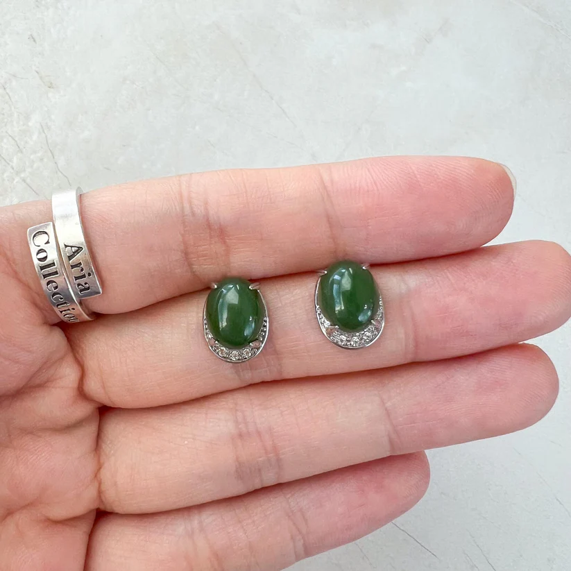 The interplay between jade’s organic warmth and silver’s smooth brilliance creates a harmonious and timeless design—perfectly suited for both everyday refinement and special occasions. Symbolizing balance and serenity, these earrings offer a meaningful expression of calm, beauty, and effortless sophistication.