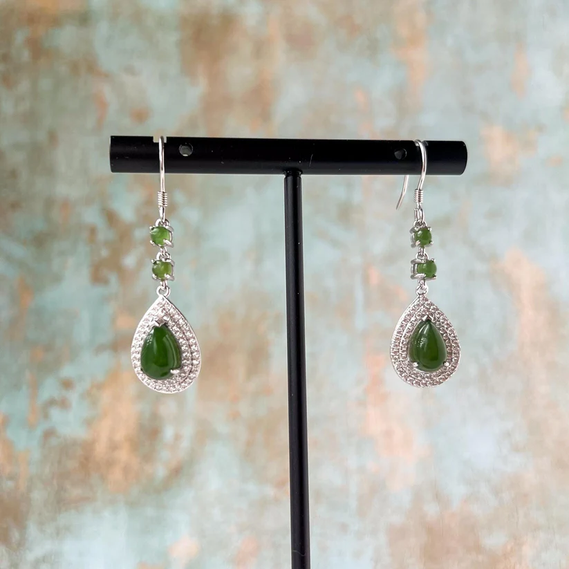 Jade Teardrop Earrings – Green Nephrite Jade in 925 Sterling Silver (JSY-0424-12149)